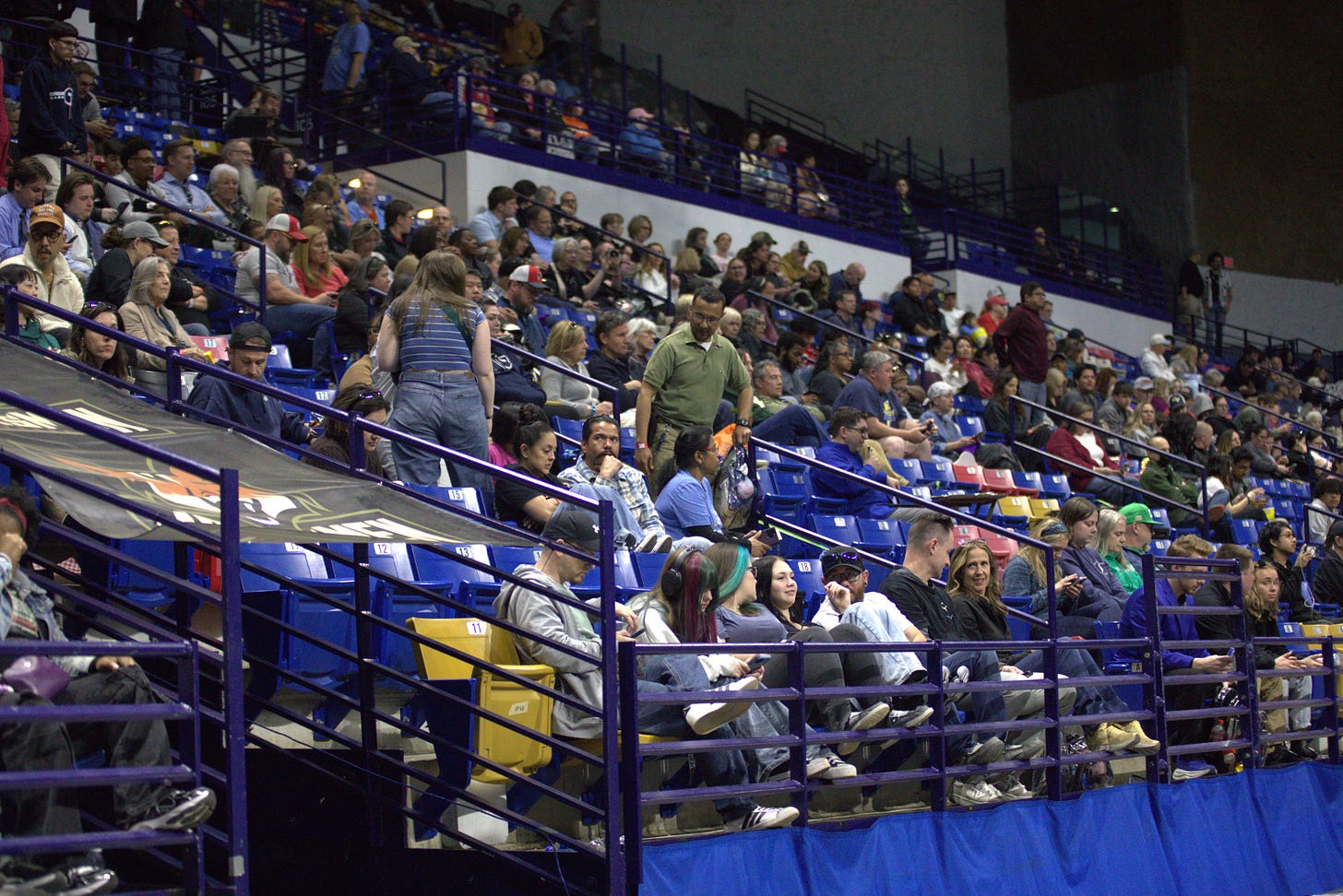 Between performances, another tradition quietly unfolds across the arena. Students trade decorated clothespins, often customized with team names, colors, or show themes, as part of a long-standing ritual known as “clipping.” Some are handed off in conversation, others are clipped onto backpacks or jackets in passing, turning a competitive environment into something more connected and communal.