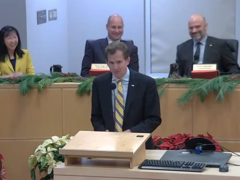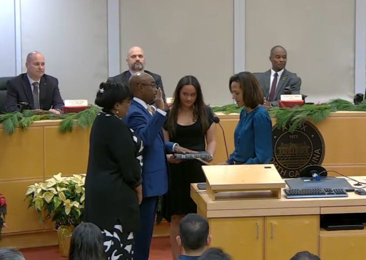Gray, an incumbent council member, spoke about the seriousness of taking an oath, emphasizing his military background and commitment to thoughtful decision-making. He thanked family, supporters, and the community, pledging to serve with integrity and respect.