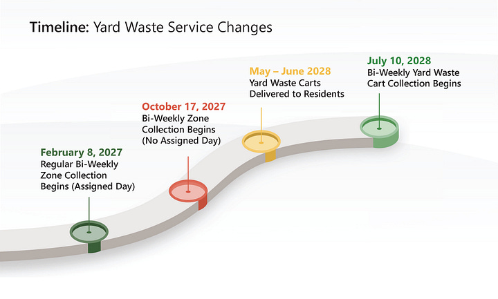 Council has already taken initial steps toward the transition. At its February retreat, members unanimously supported moving to biweekly collection and evaluating containerization, while a motion to begin communicating the eventual elimination of grass collection passed 3-2. A separate motion to immediately eliminate grass collection did not receive a second.