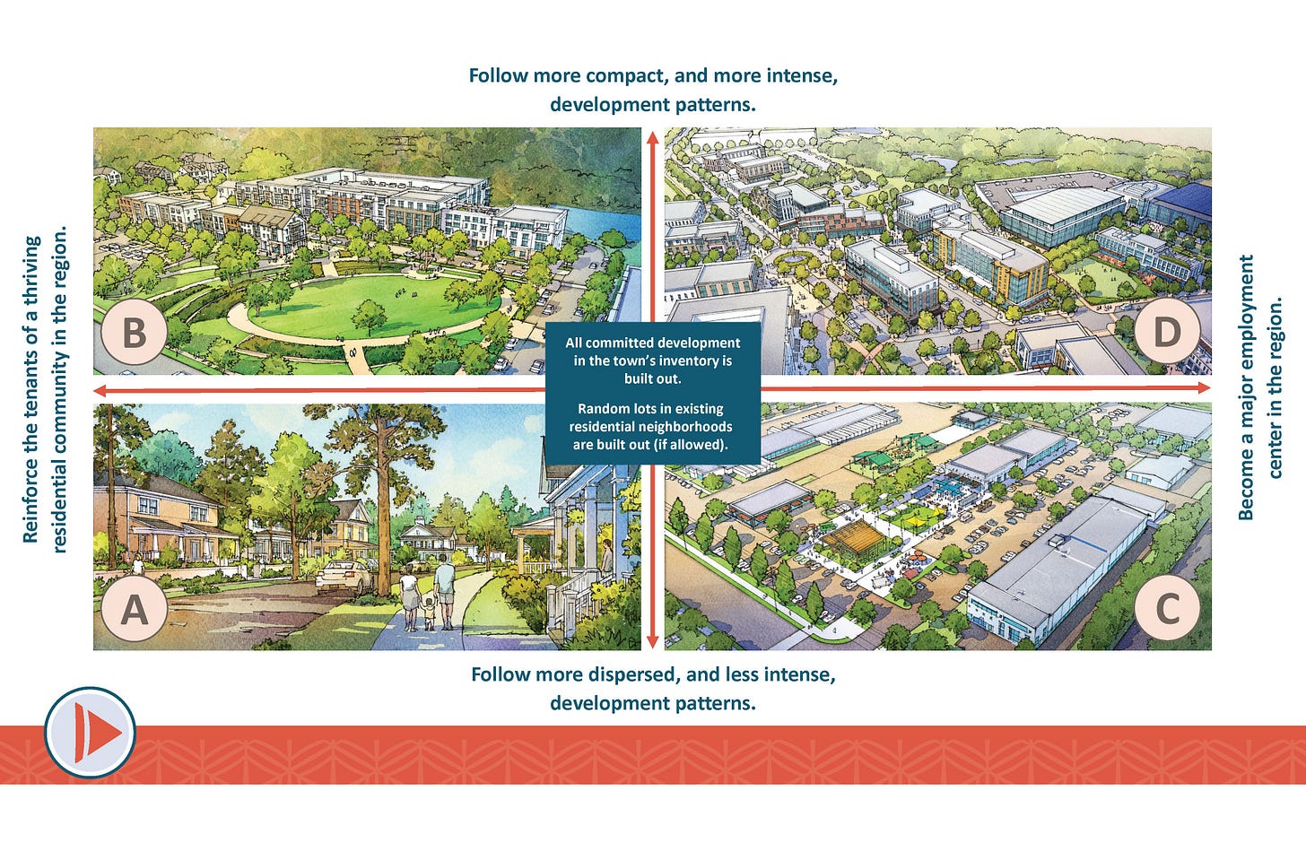 Apex is currently transitioning from the discovery phase into scenario development. A citizen task force, town staff, consultants, and Council members are involved at key points throughout the process to review information and provide feedback.