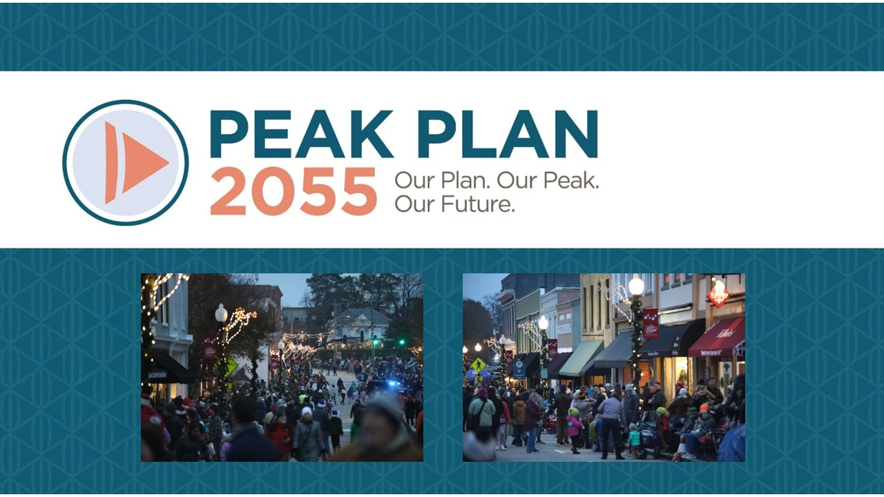 Peak Plan 2055 is Apex’s update to its current Comprehensive and Transportation plans. It will replace documents and policies adopted in 2019. Together, these plans guide decisions on land use, transportation, housing, infrastructure, and public investment.