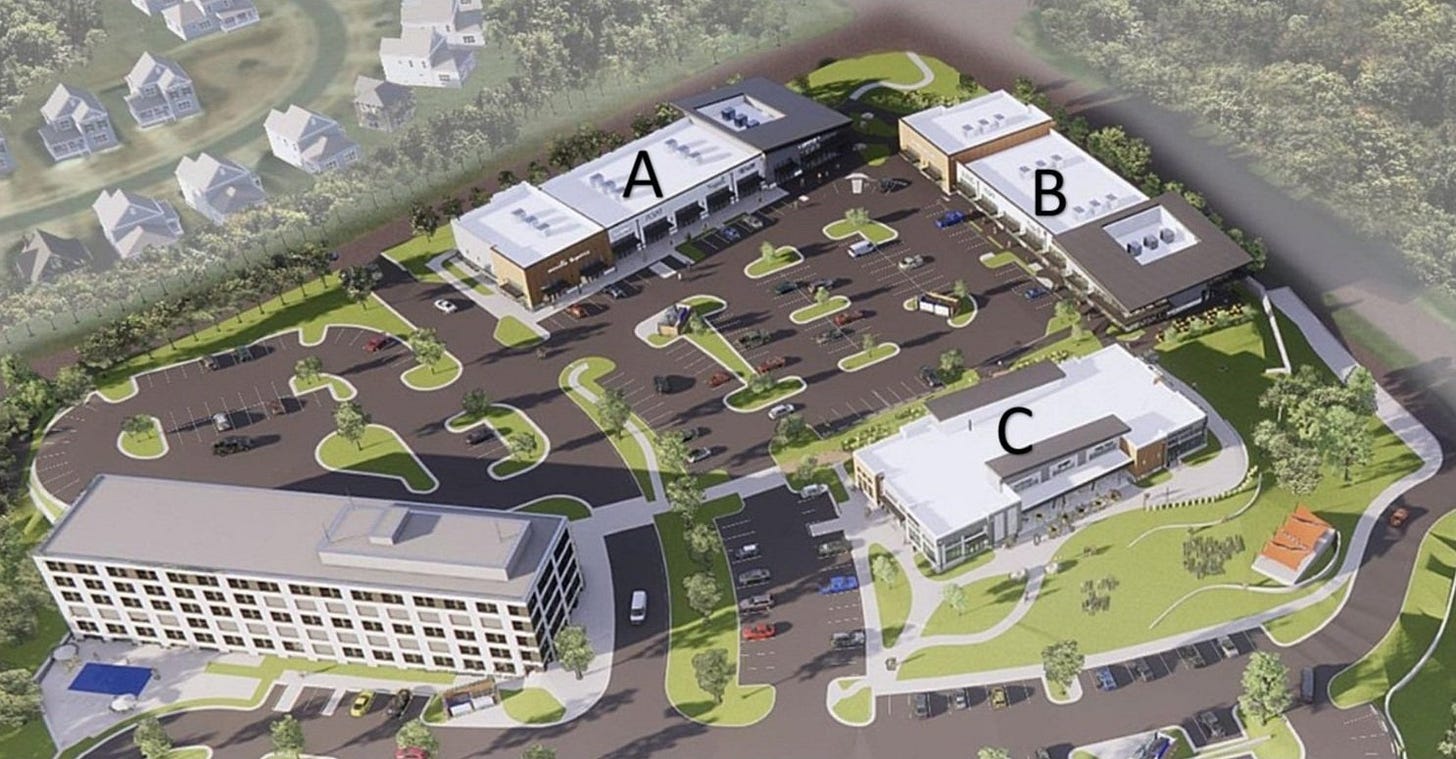 That stone plot where the equipment rental shack looks like the perfect site. Maybe a WaWa?