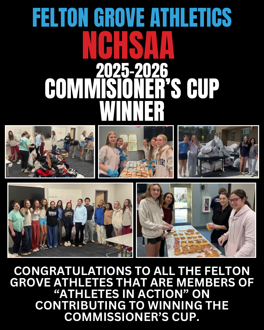 Felton Grove High School Athletics Earns Statewide Commissioner’s Trophy for Service Work