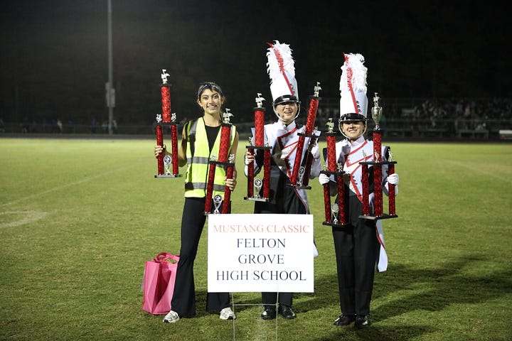 Judged by an expert panel, including Chief Judge Matt Pellas, the Mustang Classic evaluated each performance in five categories: music performance, general effect, visual design, percussion, and color guard. Felton Grove’s high marks across all categories earned the school the Best in Class 2A recognition among a competitive field.