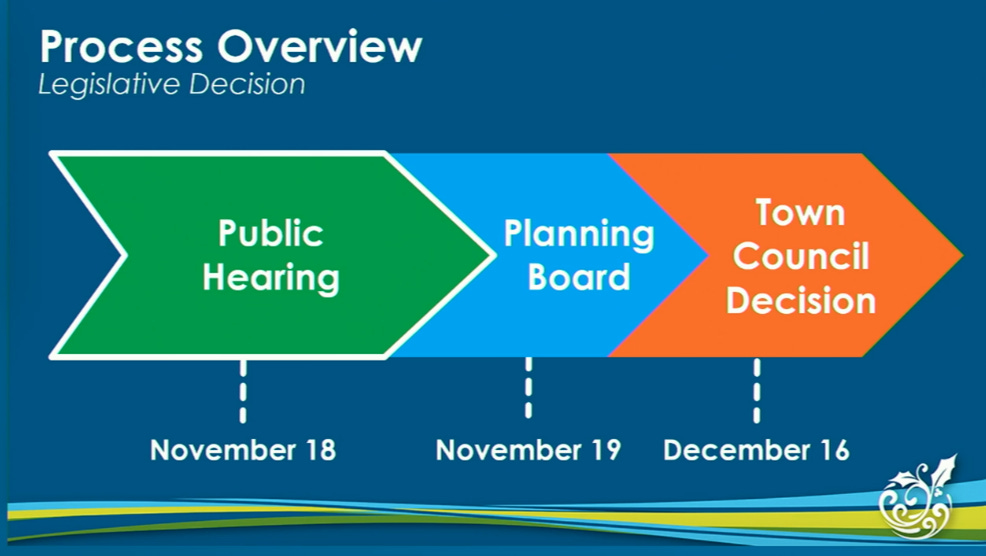 The legislative public hearing was the first step in a three-step process. The Planning Board met on Wednesday to review the case, and the next step is a December 16th visit with the Council for approval or denial.
