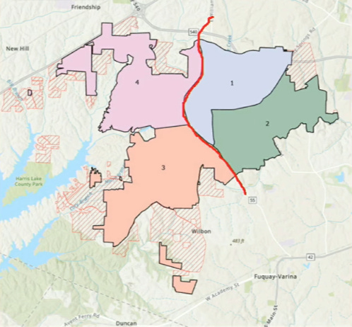 The new configuration accounts for where the town is growing fastest, particularly around Carolina Springs and along the Piney Grove-Wilbon corridor, ensuring the map can expand as development continues.