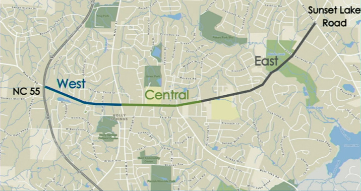 The western segment, from N.C. 55 to Main Street, is now entering the design phase.