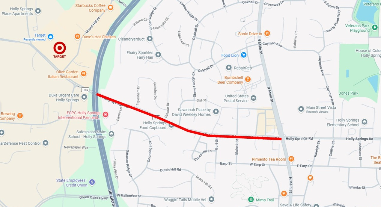 Beyond town-led projects, NCDOT has already widened Holly Springs Road from Sunset Lake Road to the NC 540 interchange at Kildaire Farm Road, creating continuity between state and local improvements.