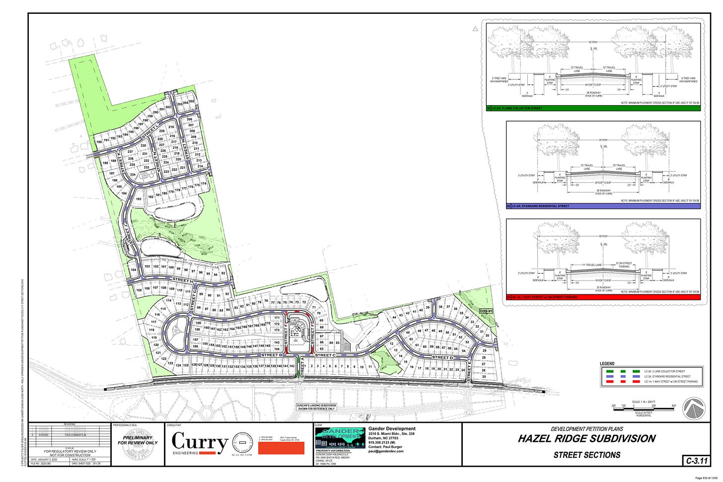 Hazel Ridge, previously known as Tassel Ridge, will be developed in the Suburban Residential Conditional Zoning District (SR-CD). Lot sizes range from 7,500 square feet to over 12,000 square feet. The project will have a residential density of 1.97 dwelling units per acre.