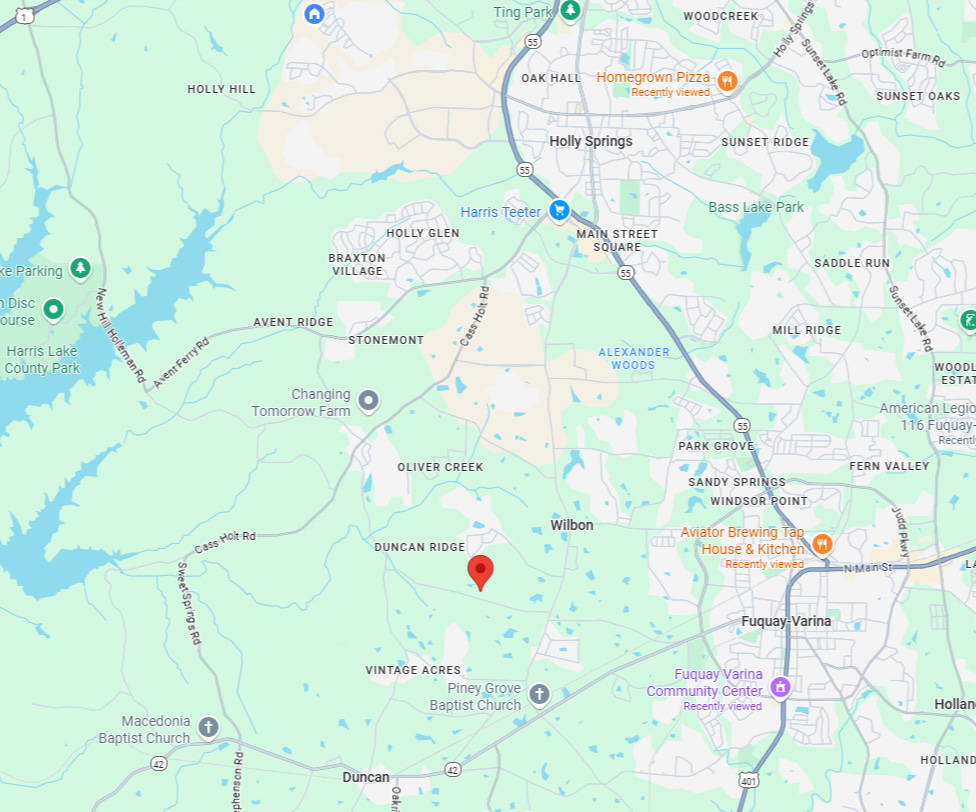 Although the property is currently located in the Holly Springs Extraterritorial Jurisdiction (ETJ), the developer has submitted a petition for voluntary annexation to access municipal water and sewer services. On July 15, the Town Council adopted Resolution 25-29 (link), which directs the Town Clerk to investigate the sufficiency of the petition and sets a public hearing for August 19, 2025.