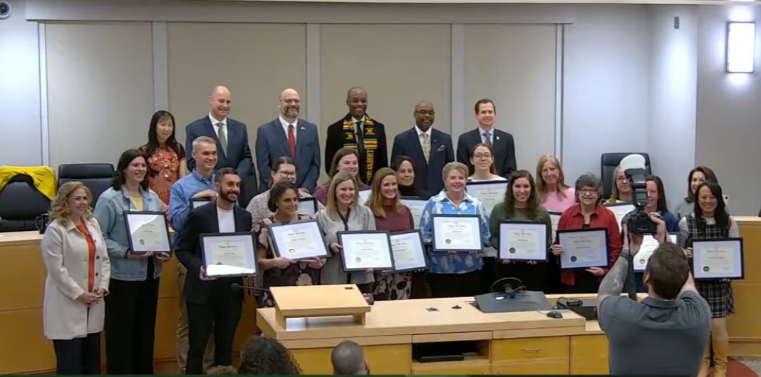 Teachers of the Year honors, a Peak S.T.A.R. Award, cultural proclamations, and a remembrance resolution preceded resident concerns over transparency and a proposed data center.