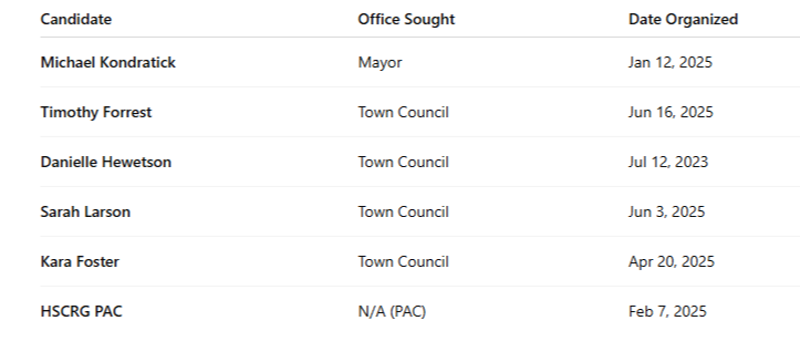 In addition to HSCRG’s PAC registration, six candidate committees have been formally filed as of June 23, 2025:
