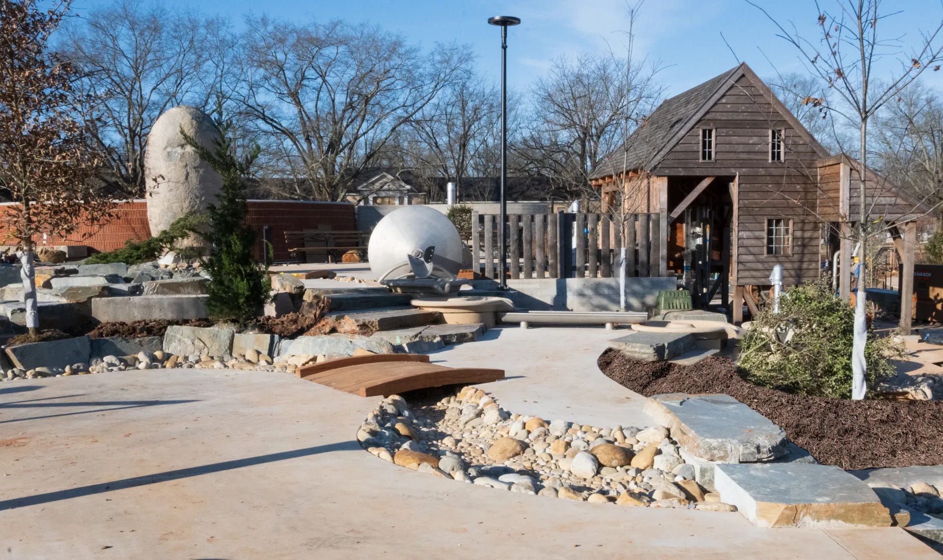 Gipson Play Plaza offers a unique blend of imaginative landscapes and hands-on features designed to inspire hours of exploration: