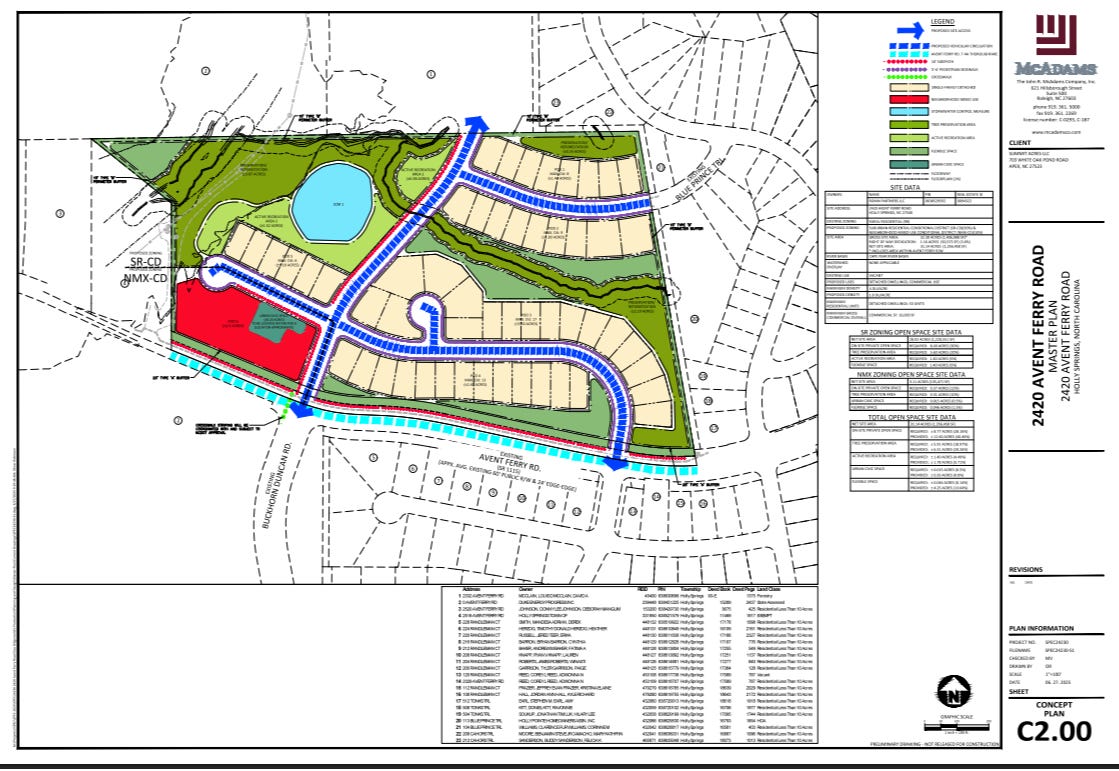 Rezoning Proposal for 2420 Avent Ferry Road in Holly Springs Outlines Vision for Residential Community with Commercial Space