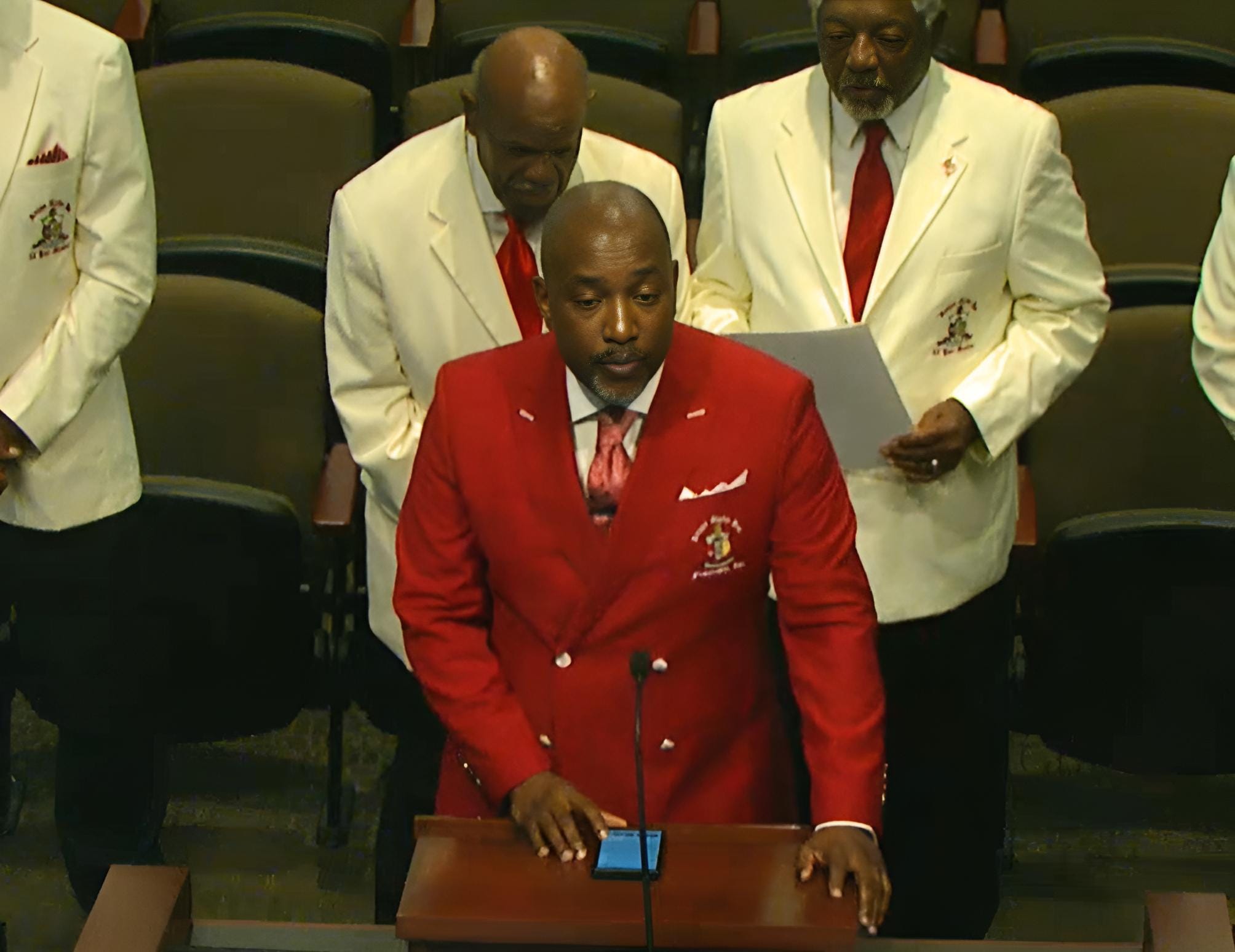 In remarks following the proclamation, Michael F. Brown, 23rd Middle Eastern Province Polemarch, reflected on the chapter’s origins in 1948, during the period of segregation, noting how the organization began in modest settings before growing into a lasting institution.